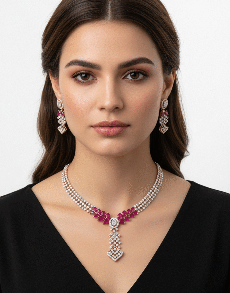 Modern Ruby Diamond Necklace for Indian Wear | Embrace Diamonds