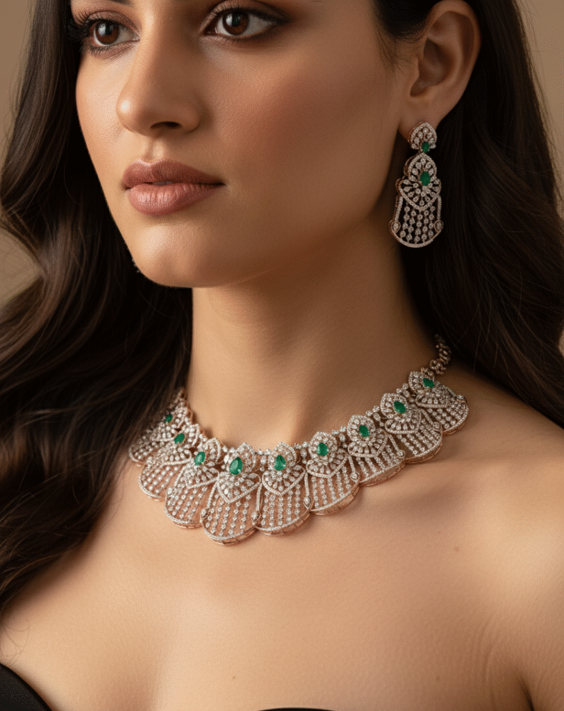 Statement Emerald Diamond Bridal Necklace Set | Embrace Diamonds