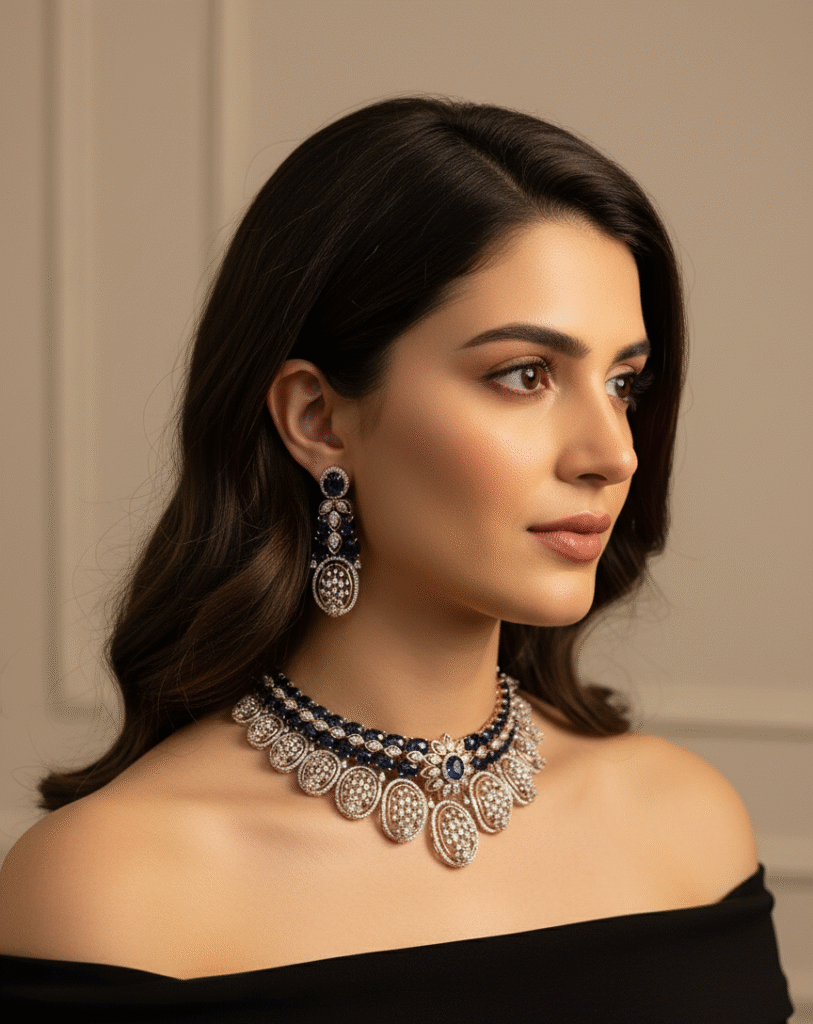 Regal Sapphire Diamond Necklace for Indian Brides | Embrace Diamonds