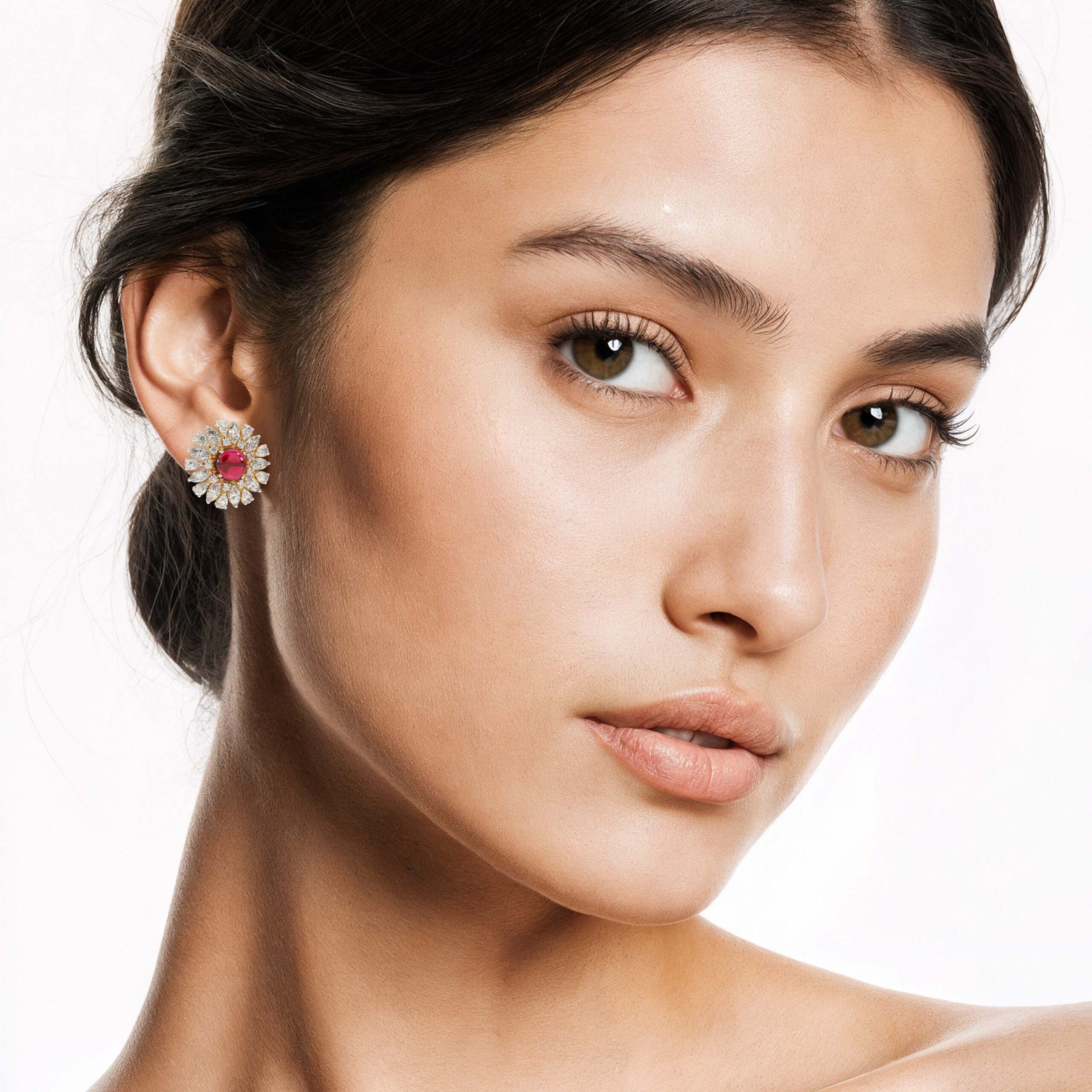 Set in luminous 14kt gold, a rich gemstone takes center stage, surrounded by a halo of brilliant diamonds that evoke the delicate petals of a flower in full bloom. Designed to celebrate both passion and grace, these earrings are a timeless expression of beauty and elegance, perfect for marking moments of significance with refined luxury.