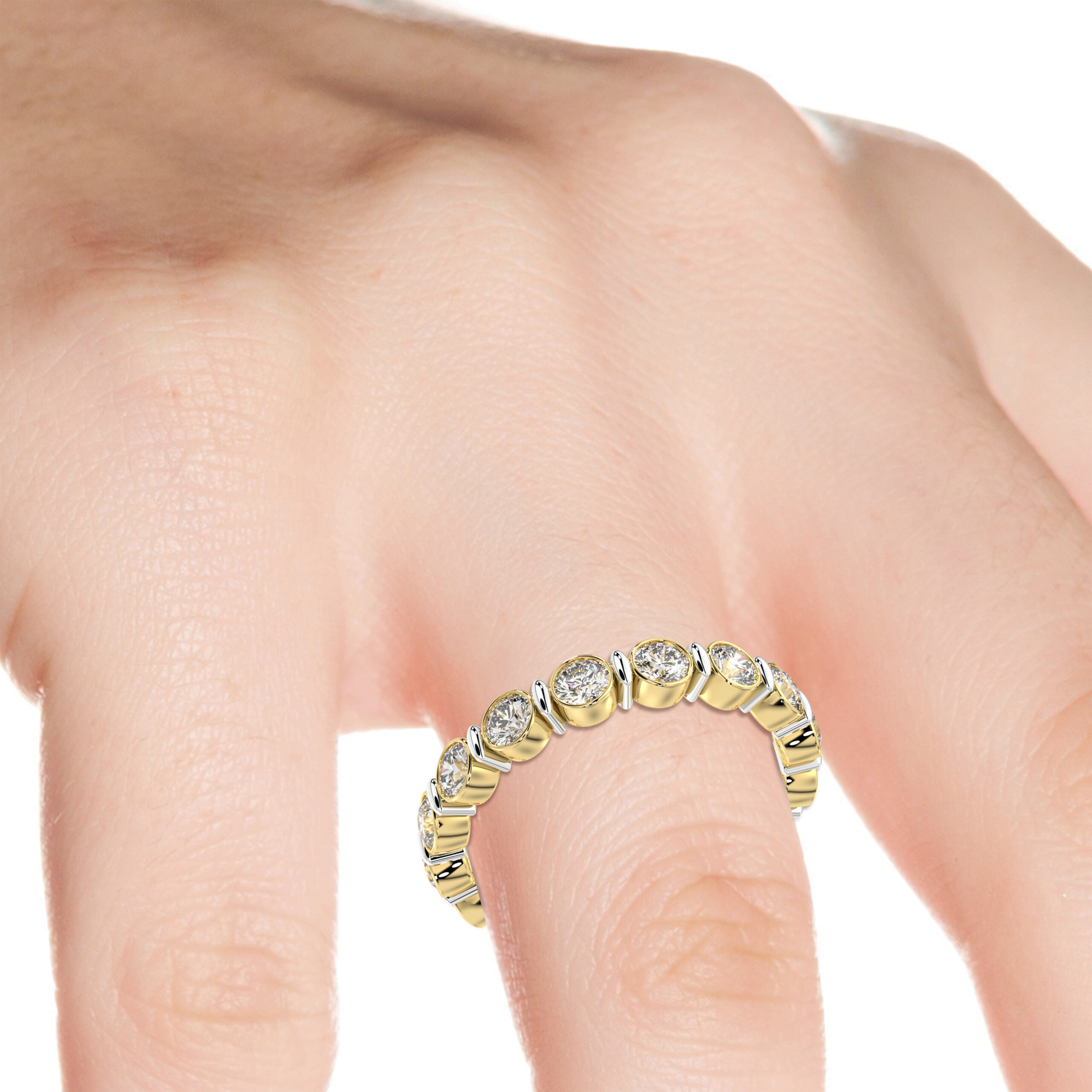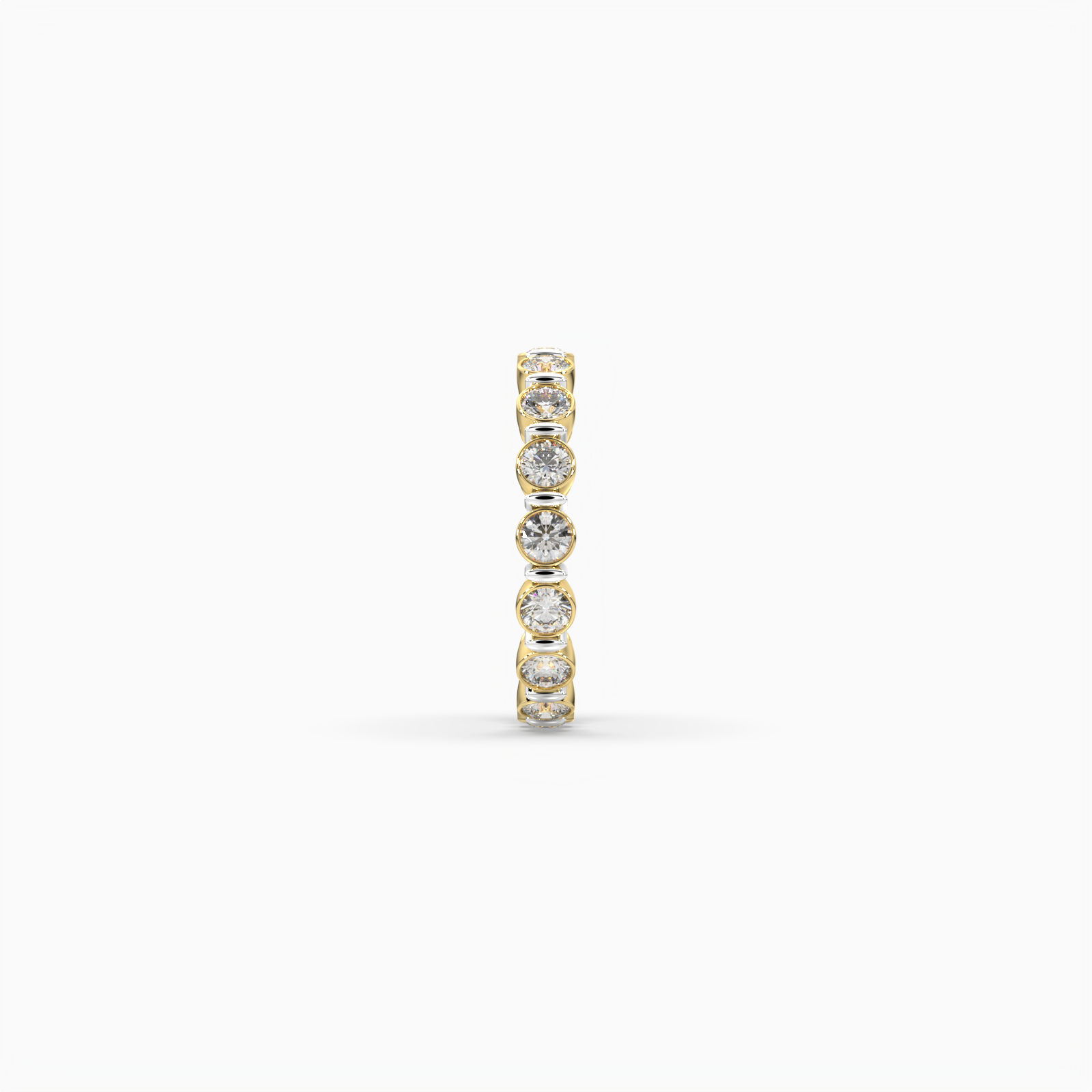 Each round diamond is encased in a smooth, sculpted setting, creating a continuous rhythm of light and form. Understated yet radiant, this design embodies effortless elegance—timeless, versatile, and endlessly wearable.