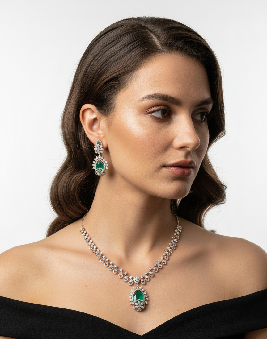 statement necklace captures royal charm — perfect for wedding receptions and luxury soirées.