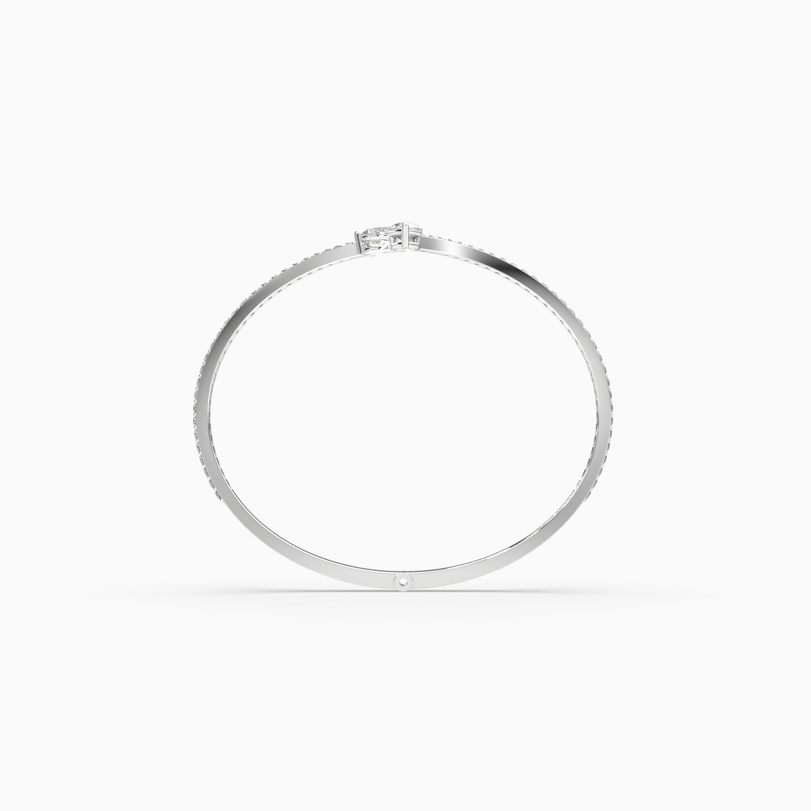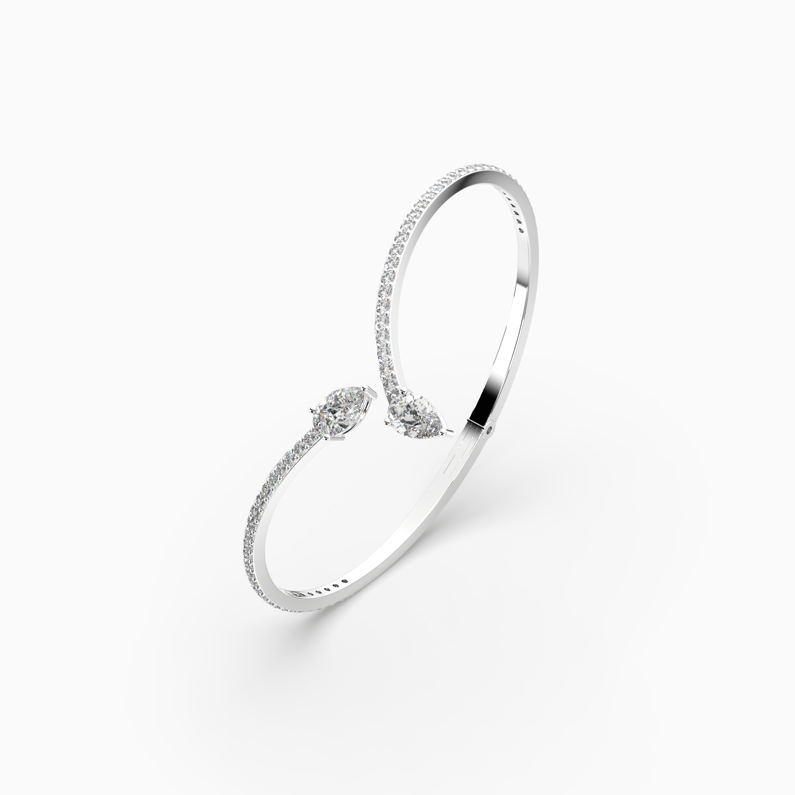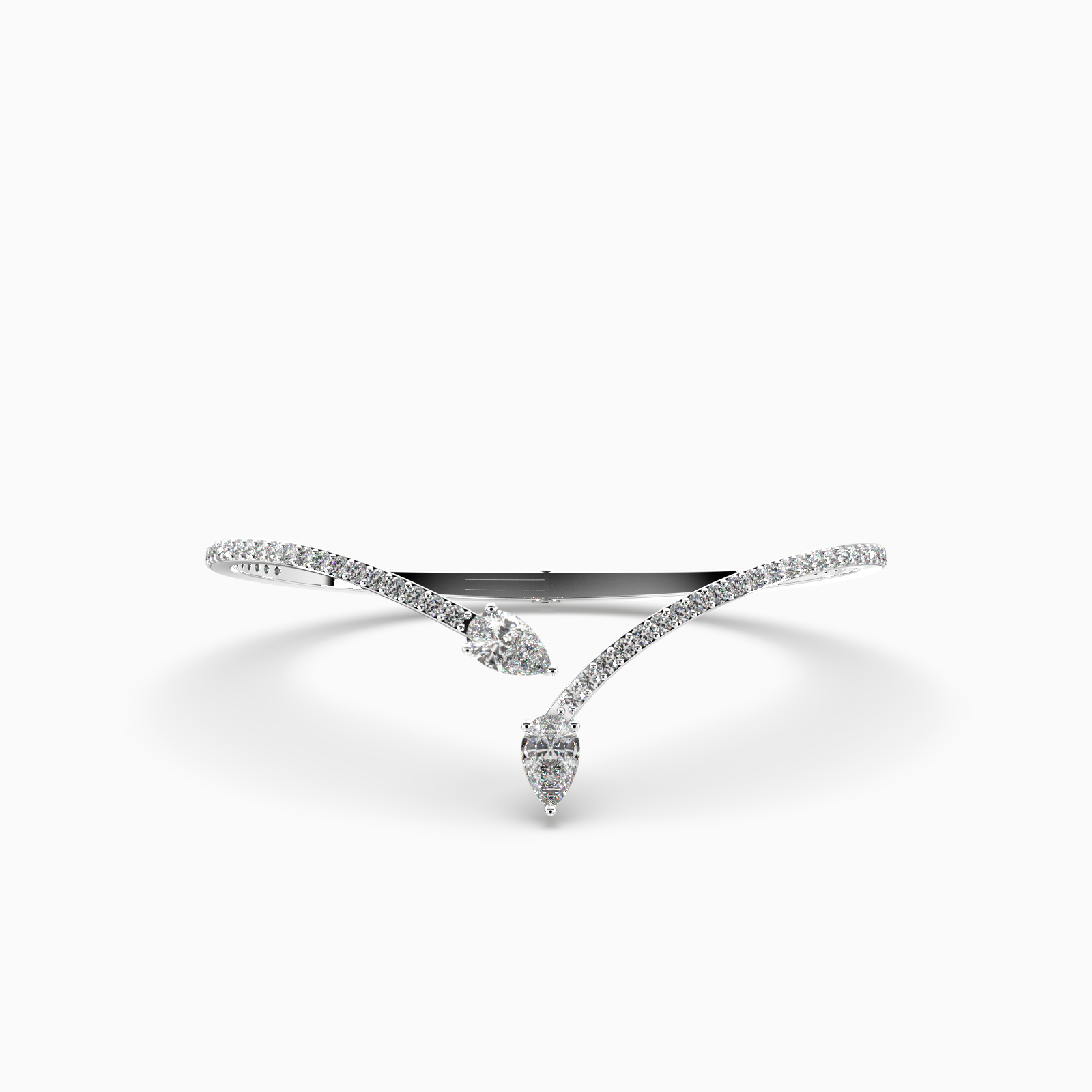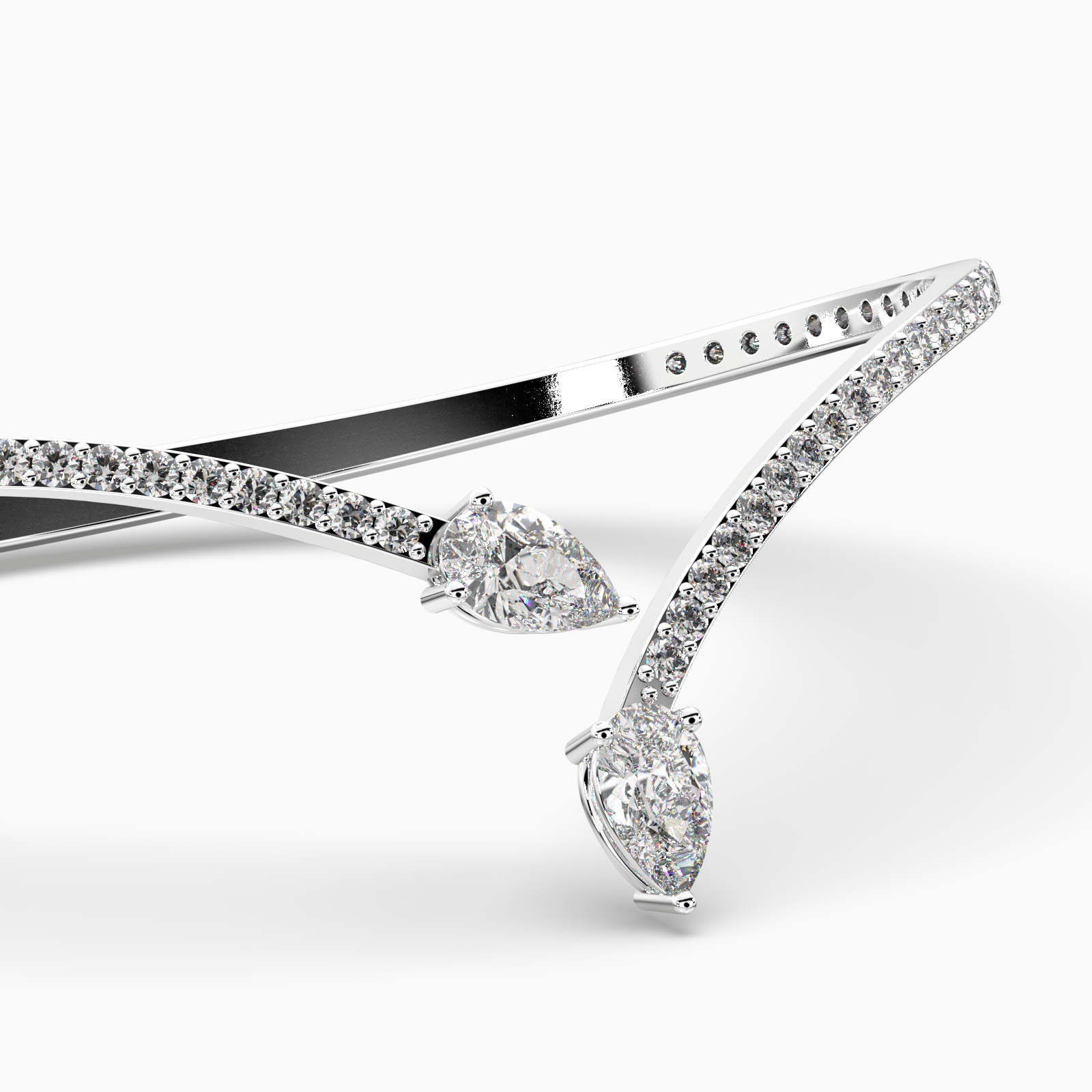 Crafted in 14kt white gold and adorned with triple excellent diamond cuts, this stunning piece captures light from every angle. The graceful arch of the bracelet culminates in two pear-shaped diamonds, a dazzling focal point that symbolizes infinite beauty. Perfect for women who appreciate refined luxury, this bracelet makes an unforgettable gift for special moments or enhances everyday wear with its timeless allure.