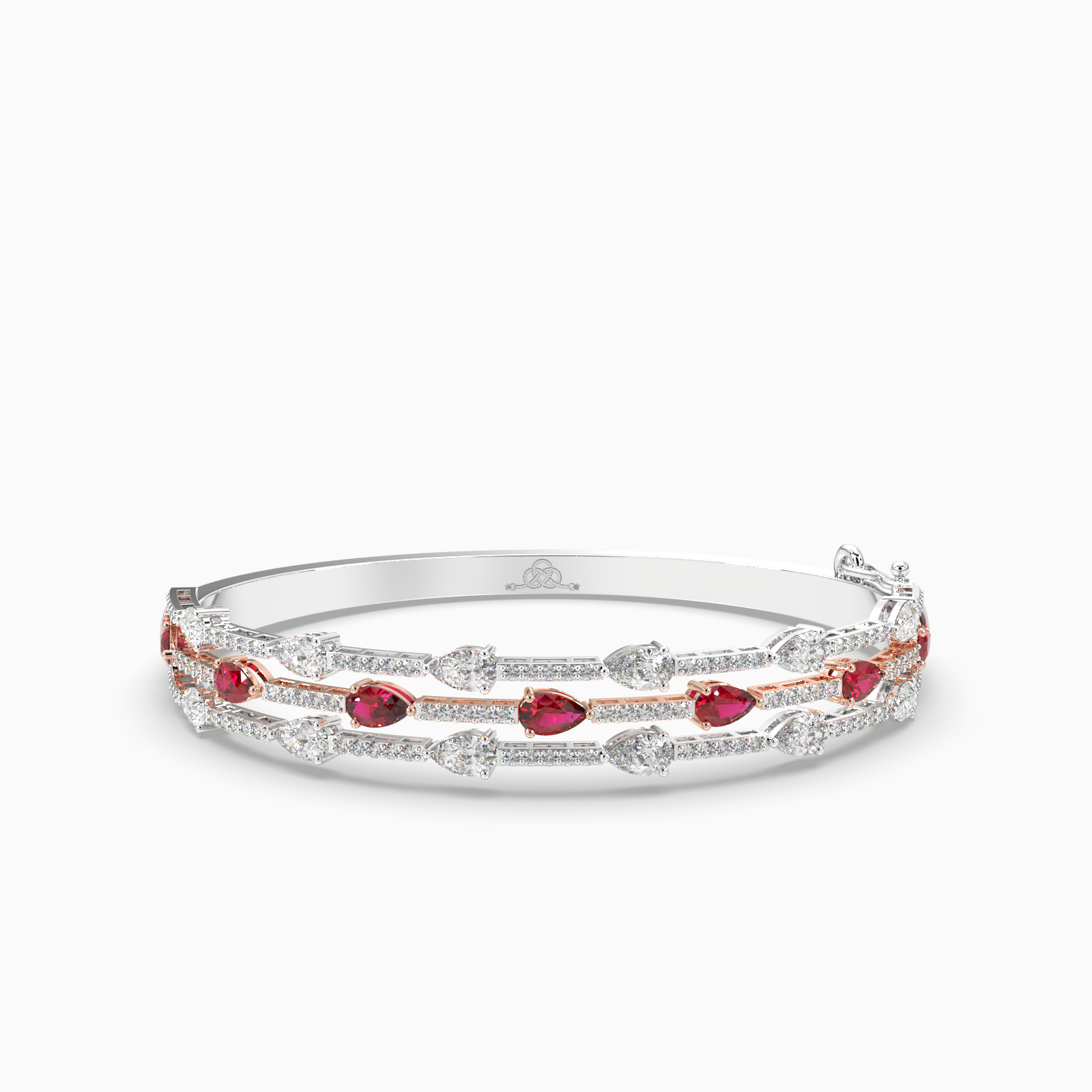 The luxurious contrast between the diamonds and colored stones, accented by gold detailing, creates a harmonious flow that is both bold and sophisticated. Designed for the modern woman who seeks sophistication in her everyday wear or a statement piece for a special occasion, this bracelet effortlessly elevates any ensemble. A true symbol of beauty and craftsmanship, perfect as a gift or an indulgence for yourself, capturing hearts with every glance.