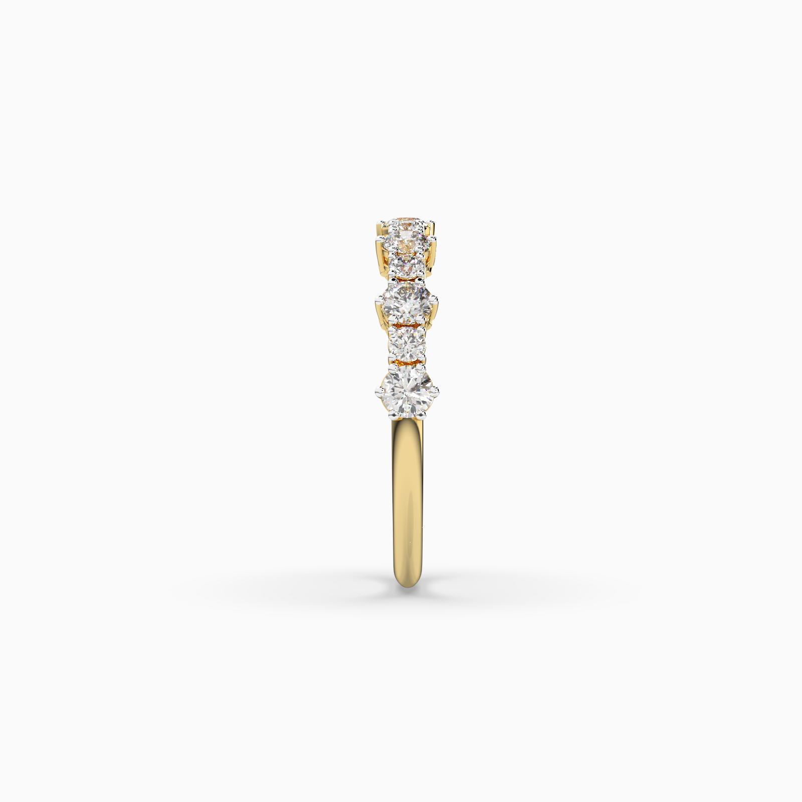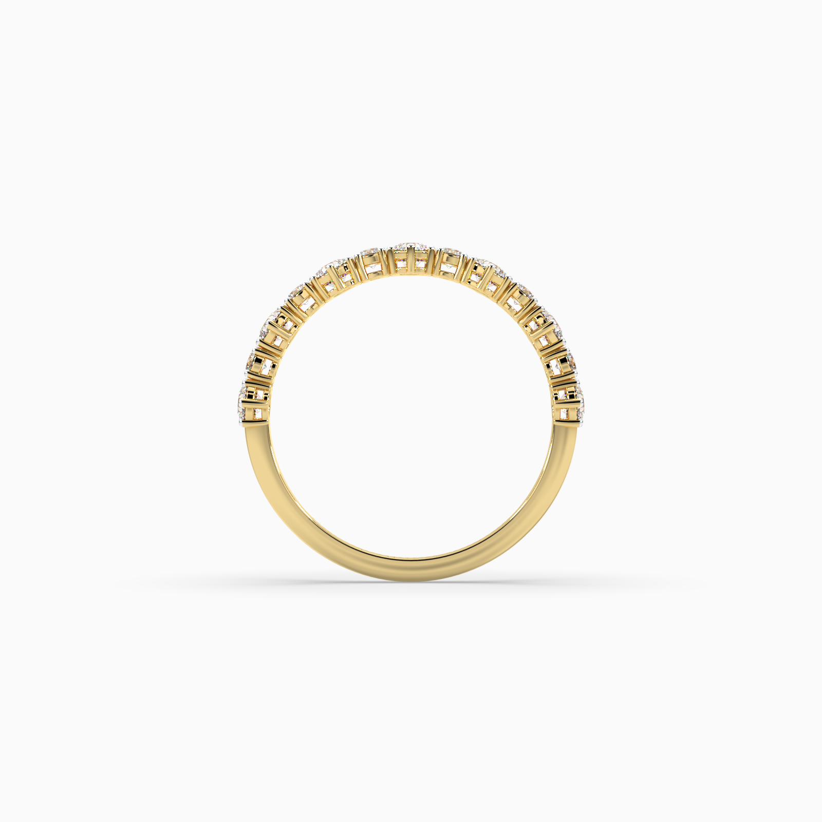 A row of meticulously set diamonds encircles the band, each stone catching light in perfect harmony. Crafted in 14kt gold, its sculpted silhouette is refined yet radiant—designed to symbolize love without end, effortlessly elegant in every detail.