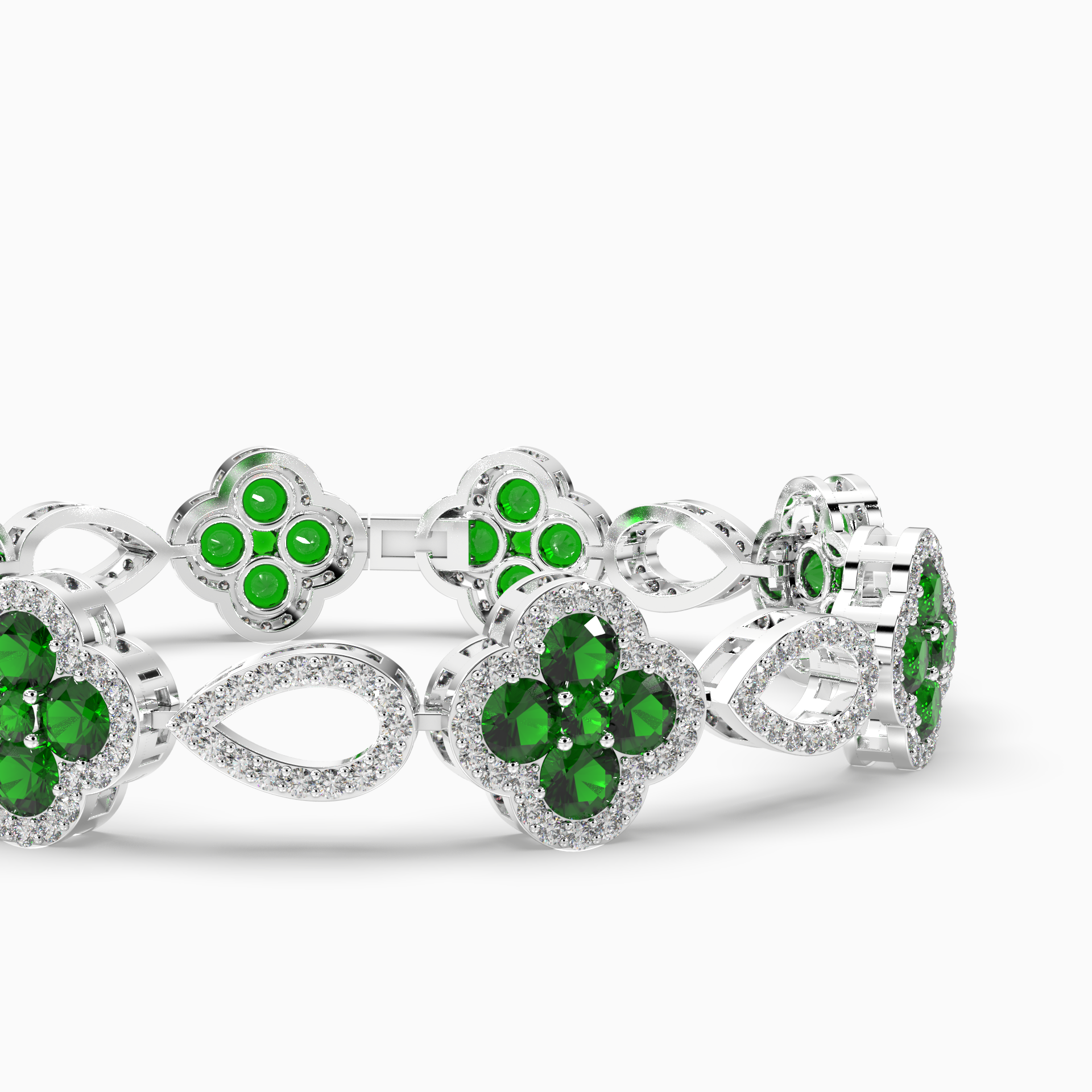The intricate design, featuring floral motifs and fluid shapes, evokes the essence of renewal and growth. Crafted in white gold, this bracelet is perfect for women who appreciate both sophistication and the natural world’s beauty. A radiant choice for special occasions, it brings a touch of elegance and color to any ensemble, making it a cherished gift or personal statement piece.