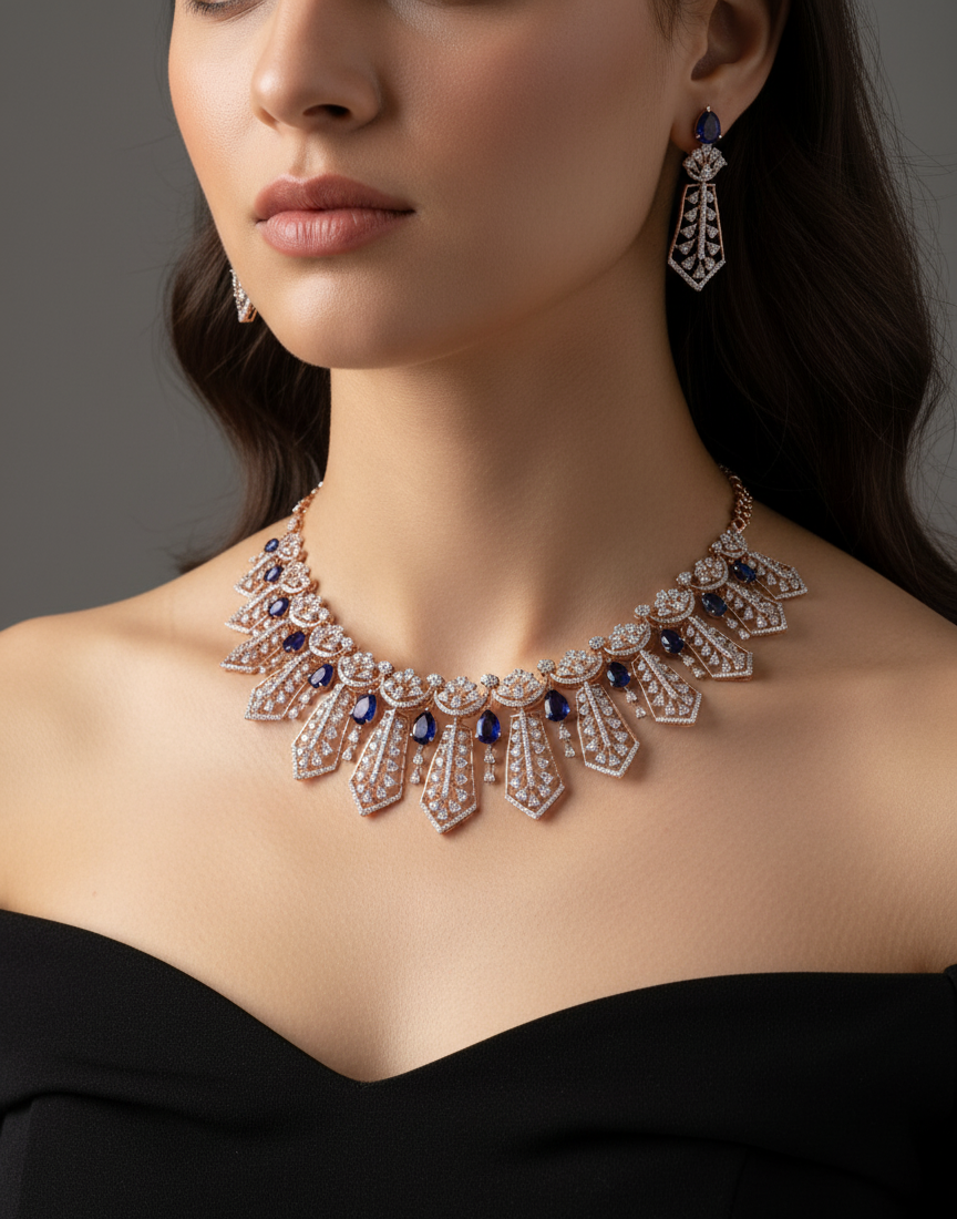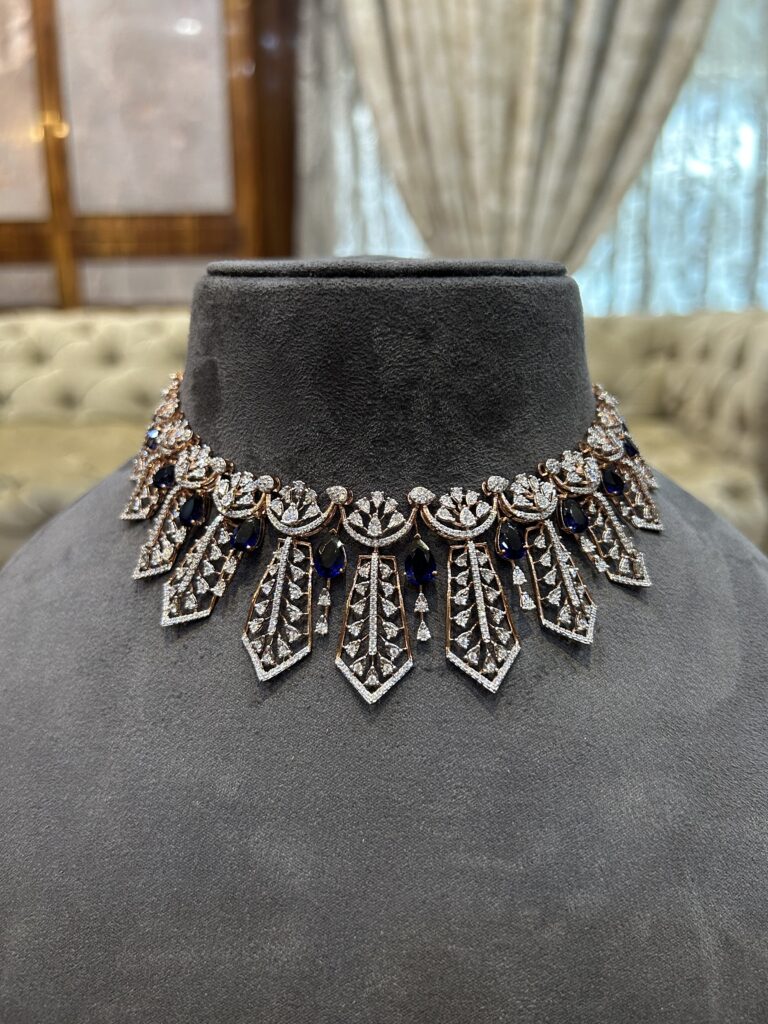 sapphires, this bold statement necklace redefines bridal luxury — perfect for weddings and royal celebrations.