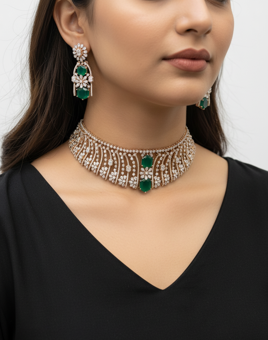 Luxury Emerald Diamond Choker for Indian Brides | Embrace Diamonds