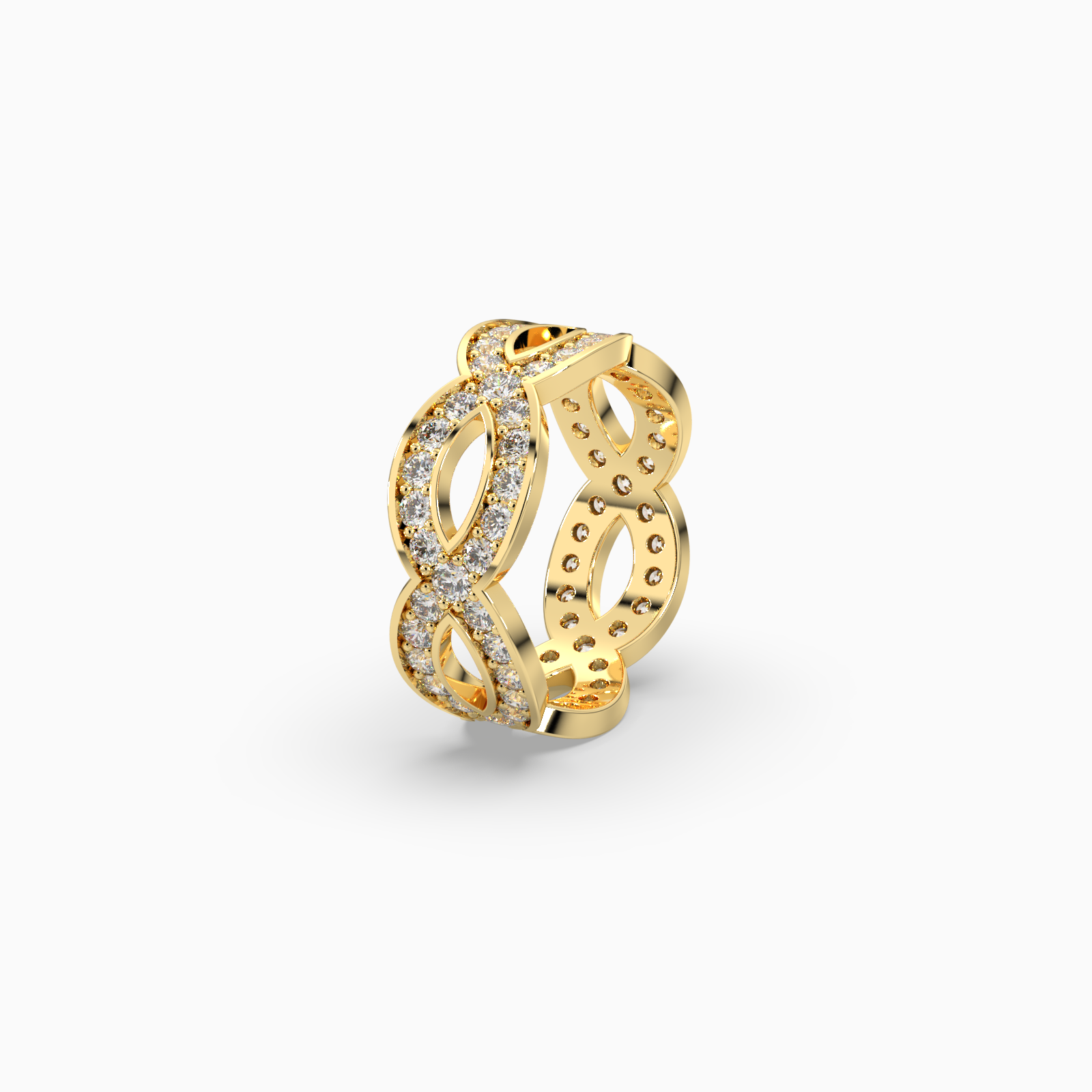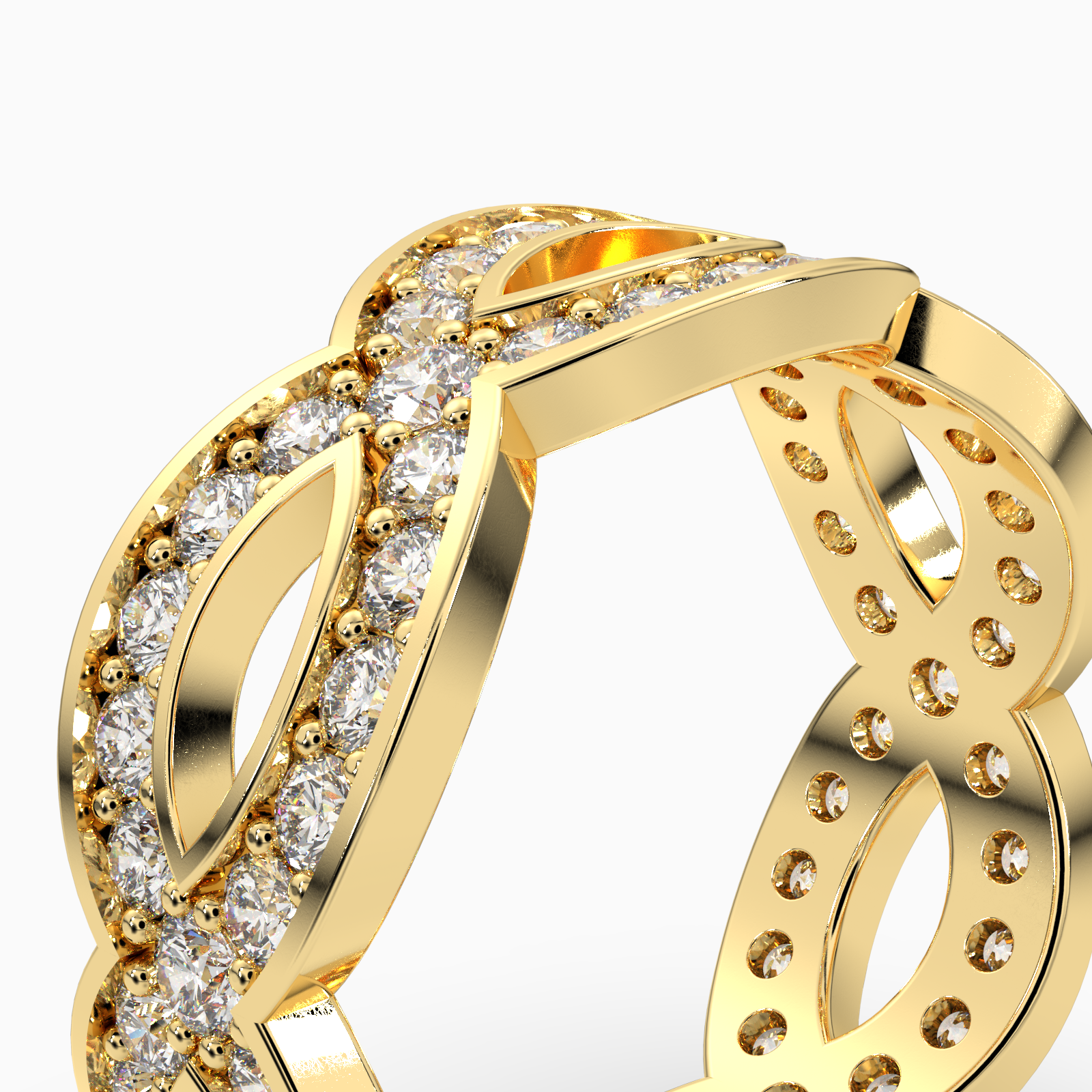 Interwoven loops, adorned with pavé-set triple excellent cut diamonds, create a mesmerizing interplay of light and form. Bold yet refined, it layers seamlessly or commands attention as a statement of modern luxury.