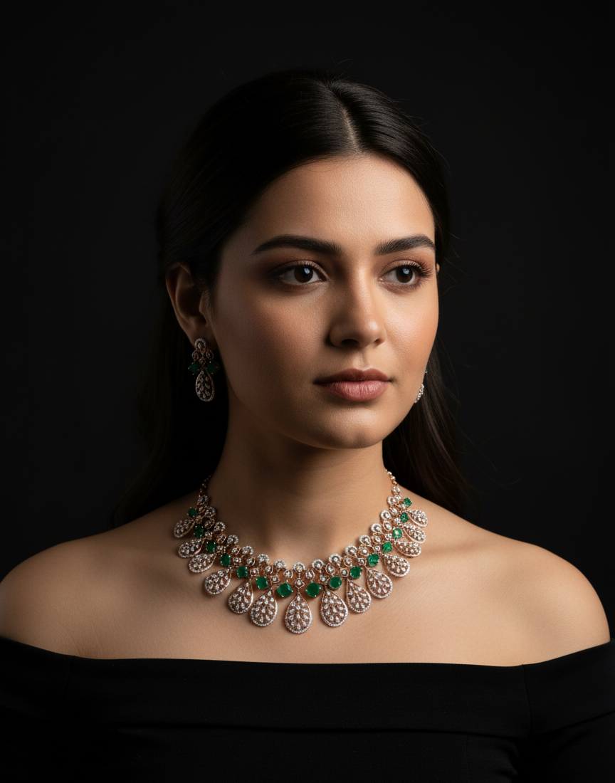and emeralds reflects regal artistry — ideal for weddings, festive celebrations, and timeless statement wear.