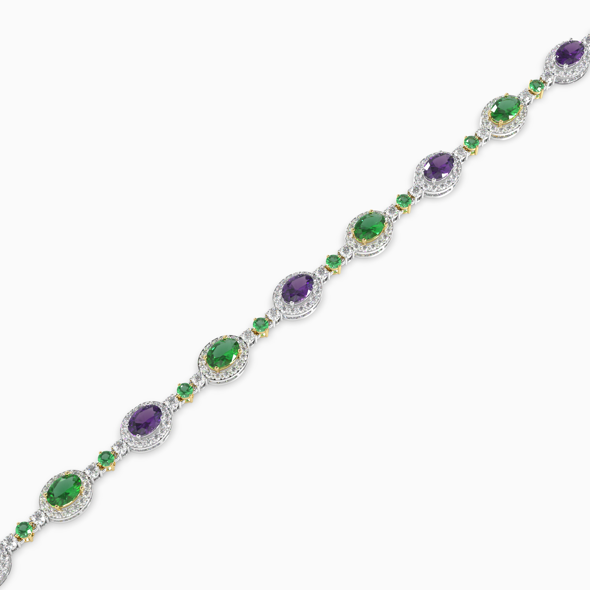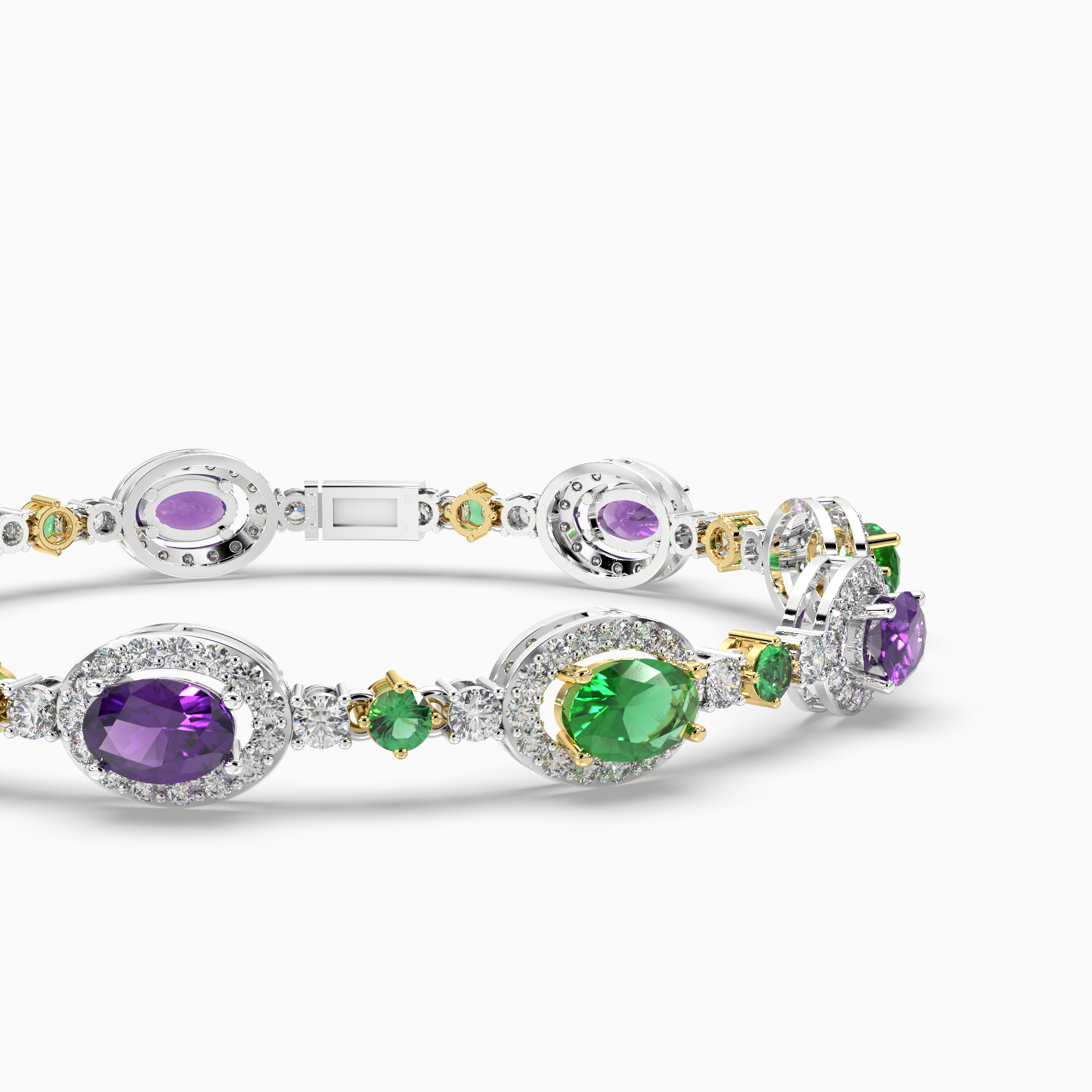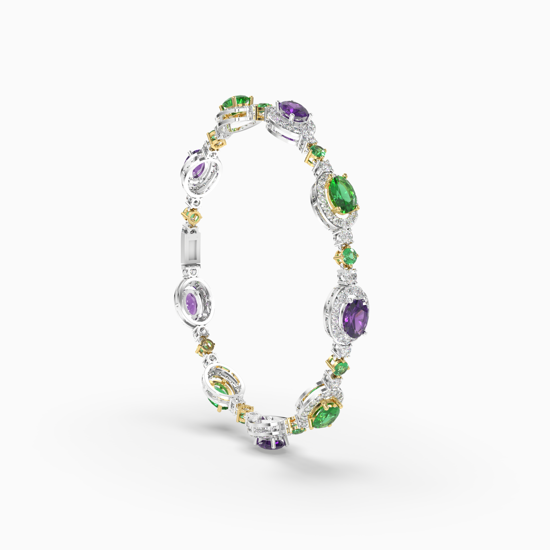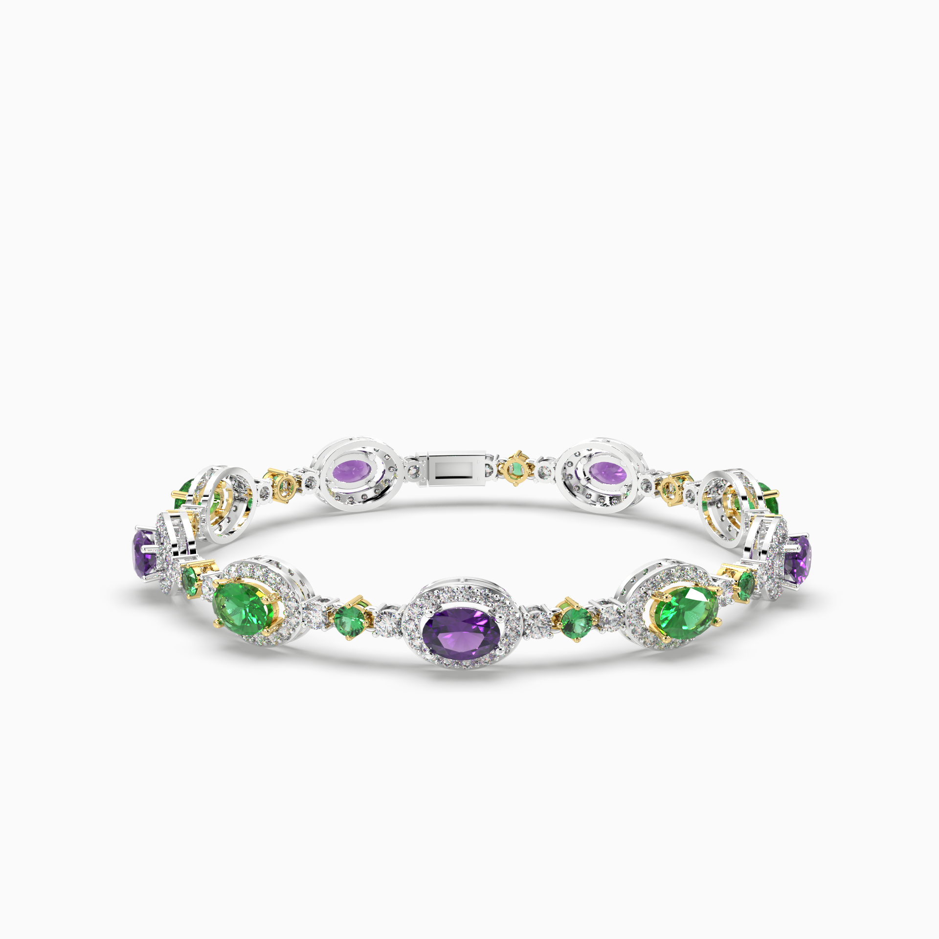 The intricate pattern of alternating stones and diamonds reflects an artistry inspired by nature’s most precious jewels. Crafted for women who appreciate both elegance and individuality, this bracelet is perfect for making a statement at special occasions or adding a pop of color to everyday wear. A timeless piece that radiates luxury and sophistication, it’s an exquisite gift for those who cherish beauty and boldness.