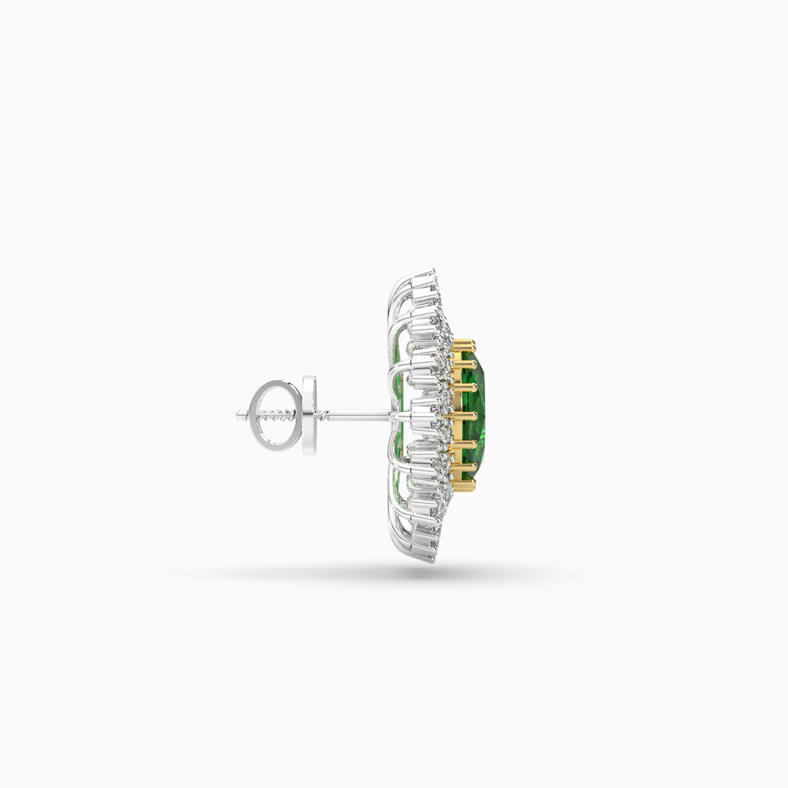 Set in 14kt white gold, the vibrant green gemstones are encircled by a halo of brilliant diamonds, radiating outward in perfect harmony. A masterful fusion of strength and grace, these earrings are designed to elevate life’s most cherished moments, offering timeless beauty and sophistication that transcends trends, marking each moment with quiet brilliance.