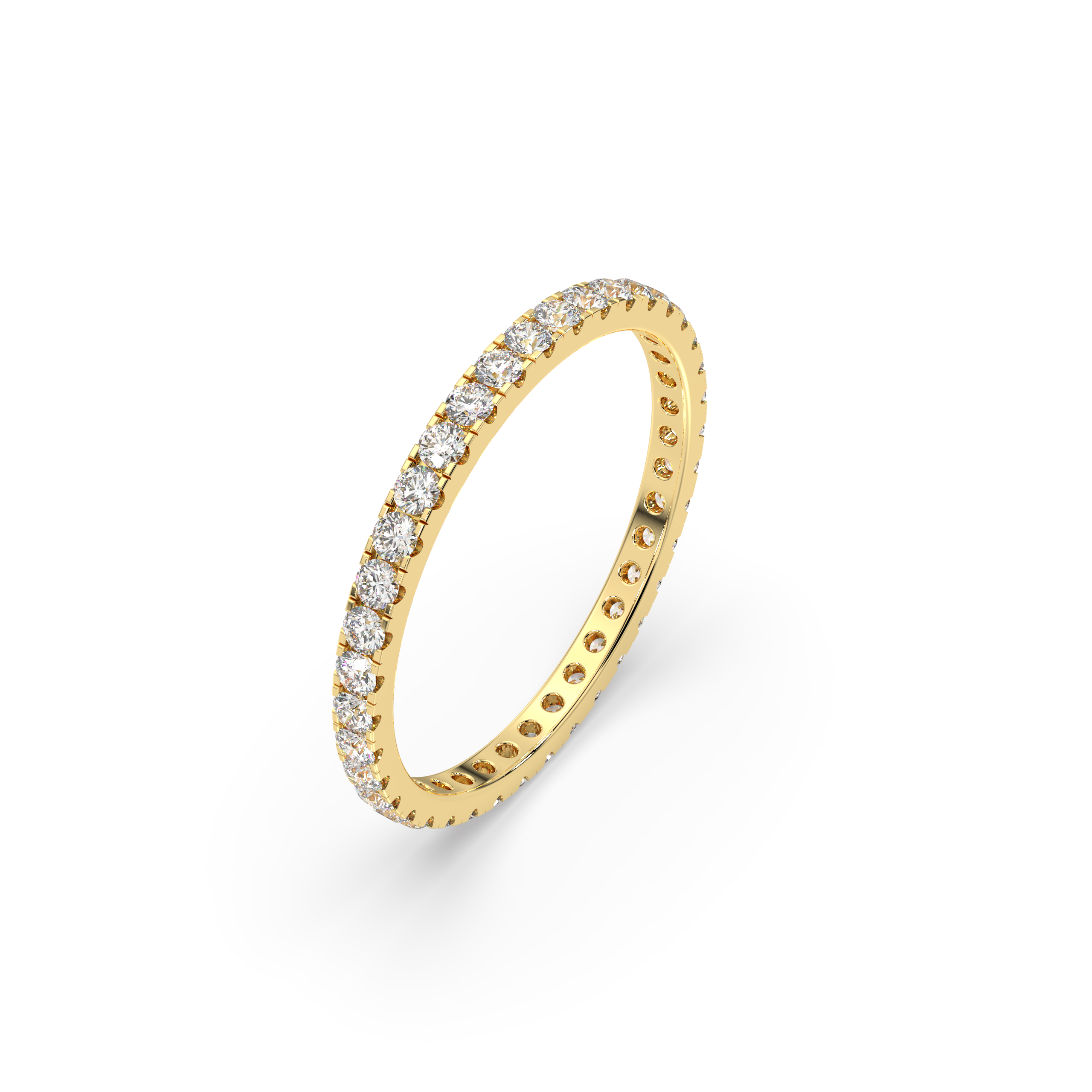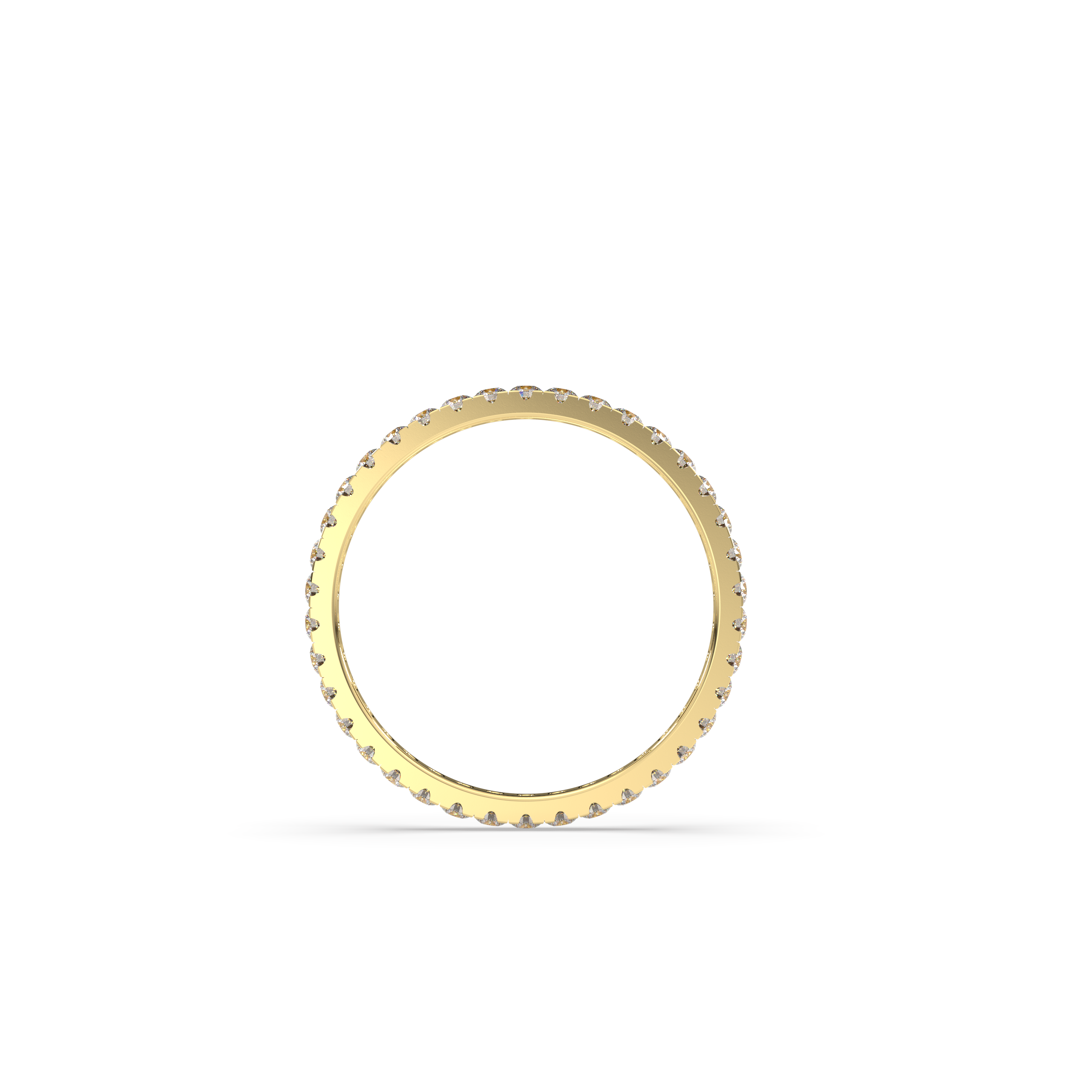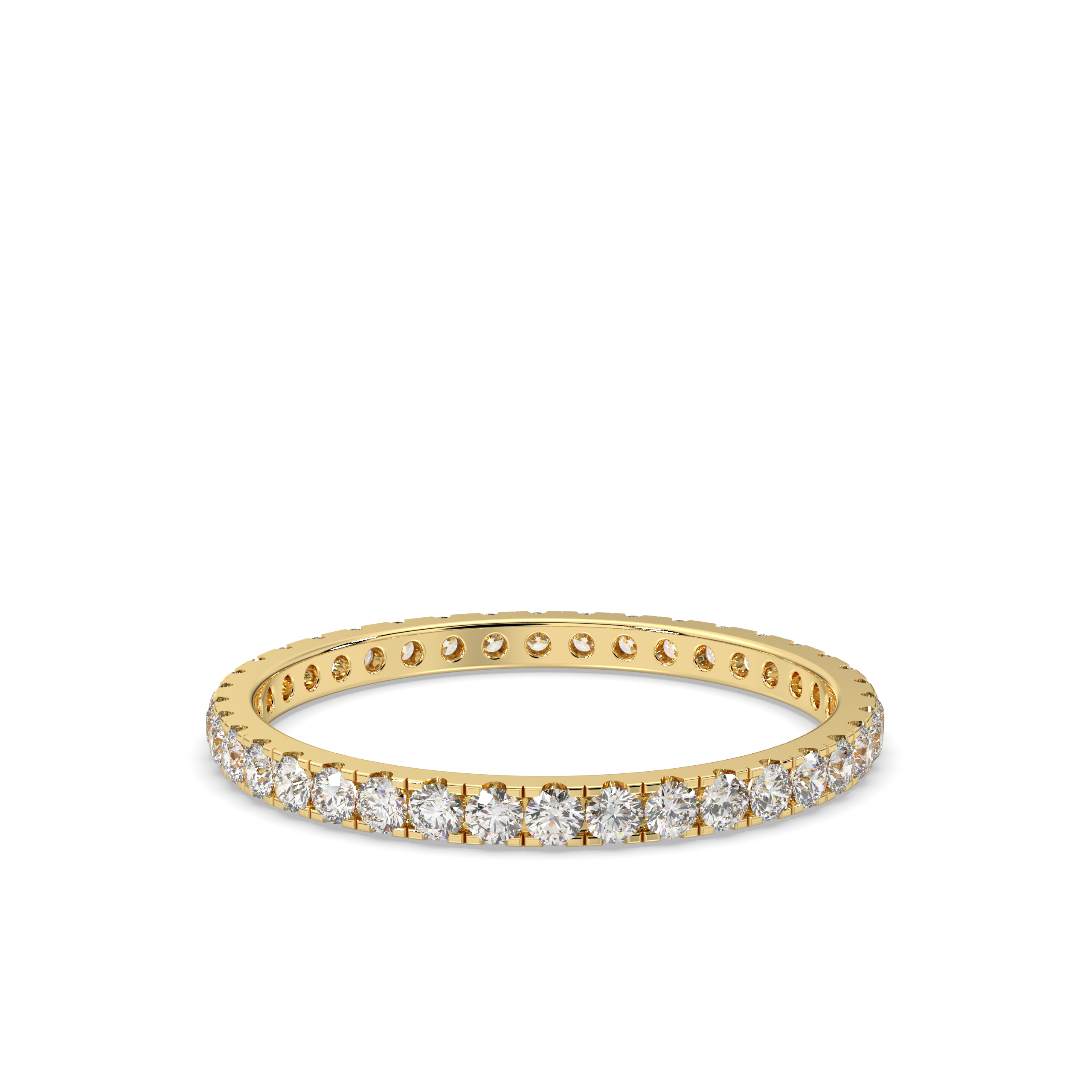 A vision of infinite brilliance, this 14kt gold eternity stacking ring is adorned with a seamless circle of triple excellent cut diamonds.