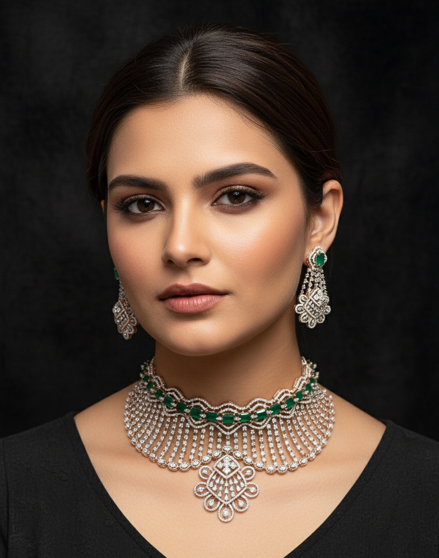 emeralds, this royal bridal choker embodies regal elegance and exquisite craftsmanship, perfect for grand Indian weddings.