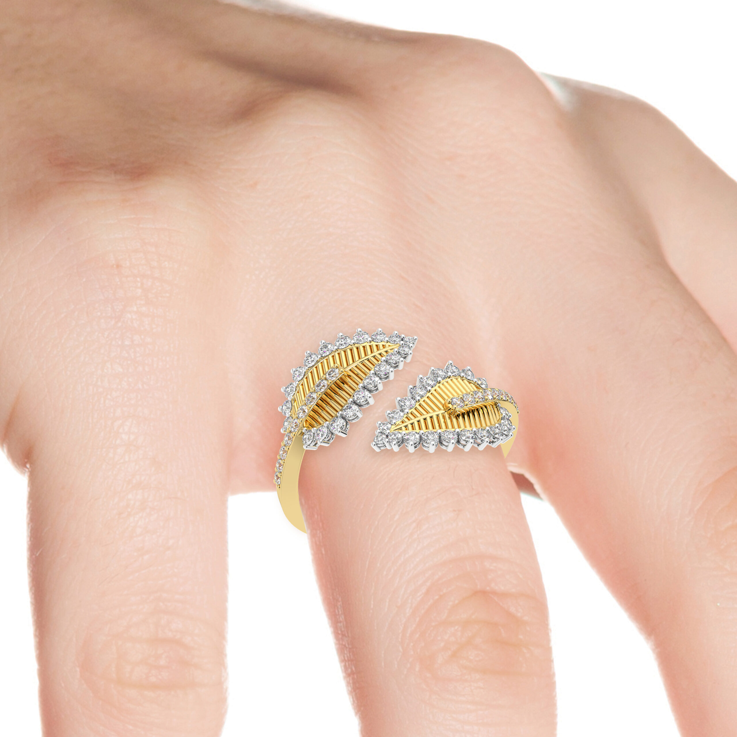 A poetic ode to nature’s grace, this 14kt gold statement ring captures the essence of delicate leaves in motion.