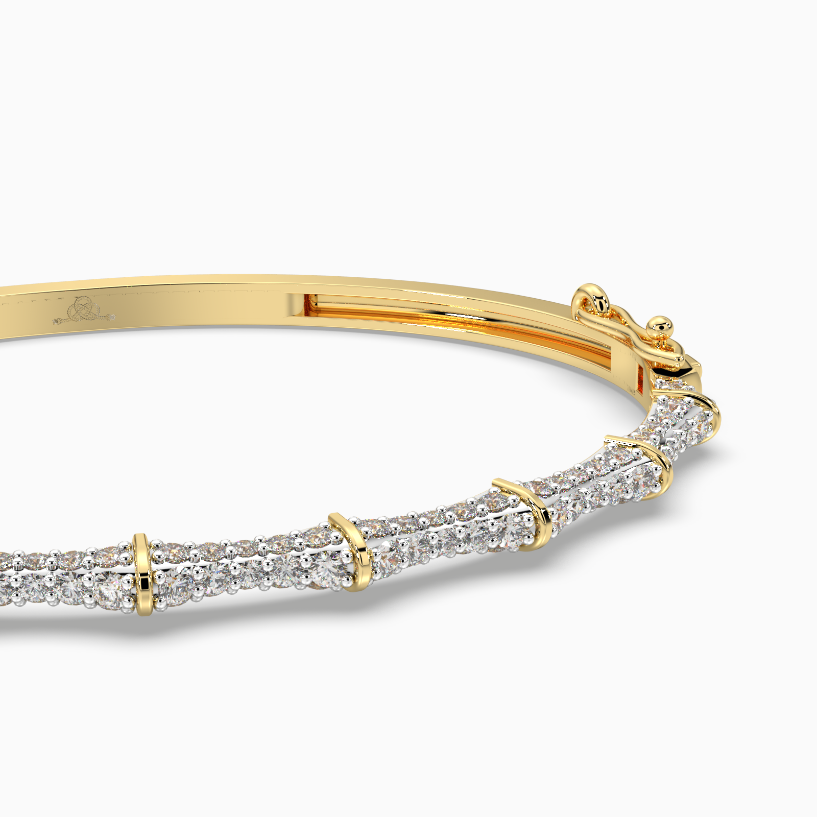 Featuring brilliant diamonds set in a unique bamboo-inspired design, it combines nature’s beauty with luxury. Crafted for women who appreciate understated glamour, this bracelet is perfect for stacking or wearing alone. Whether as an everyday accessory or a special gift, it brings a refined touch of sophistication to any occasion.